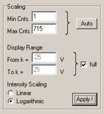 | From k= / t min. | The minimum value (=left border) of the axis of ordinates (=t axis for I(t) scans, k axis for 1D scans). |