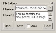 In the file settings group box you can specify all parameters about how the current data set is saved or you can load save files from your storage medium.