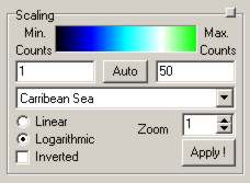 | Min. Counts | The minimum number of counts to display, corresponding to the very left colour in the current colour table. Setting this value to more than the minimum number of counts within the scan reduces the noise in the diffuse background intensity. |