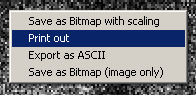 | Save as Bitmap with scaling | Saves the current scan data "as is" to a bitmap file. The image will contain exactly what you see on your screen. |