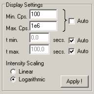 | Auto cps. / cnts. | Automatically determine the minimum and maximum number of counts or counts per second within the current data set. |